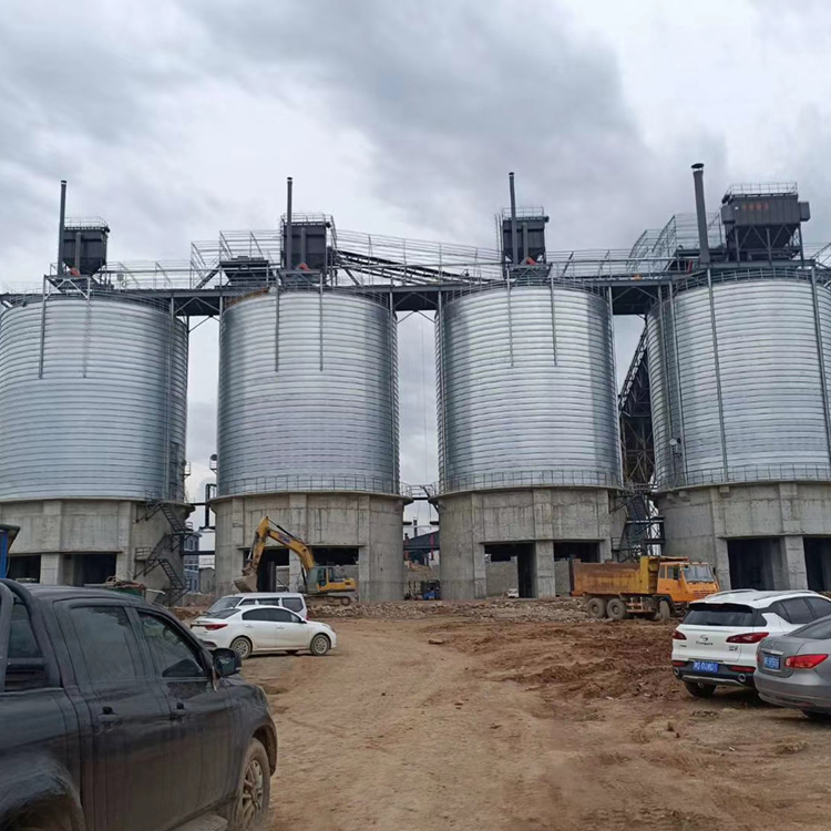 接收与清理设置在筒仓中央该形式筒仓一般采用对称排列,提升机井架固定,经过提升后的物料通过仓顶溜管进人筒仓。这种形式省去了仓顶输送设备和上通廊,从而节省了建造费用,缩短了建造工期。对于贮存时间要求较长的大型粮库,则应根据物料的流向、场地情况、工艺要求等合理地配置投料口、工作塔、烘干塔及宿州钢板仓的位置。国华钢板仓介绍了这几种常见的进料形式,实际中可将各种形式相互组合,相互渗透,根据实际情况合理搭配,灵活选用。